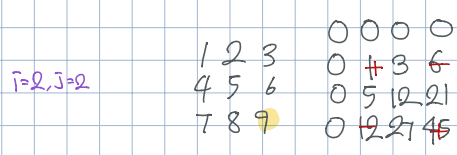 dp[i + 1][j + 1] = mat[i][j] + dp[i][j + 1] + dp[i + 1][j] - dp[i][j];