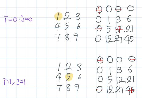 // fill dp table with cumulative sum from (0,0) to (i,j)